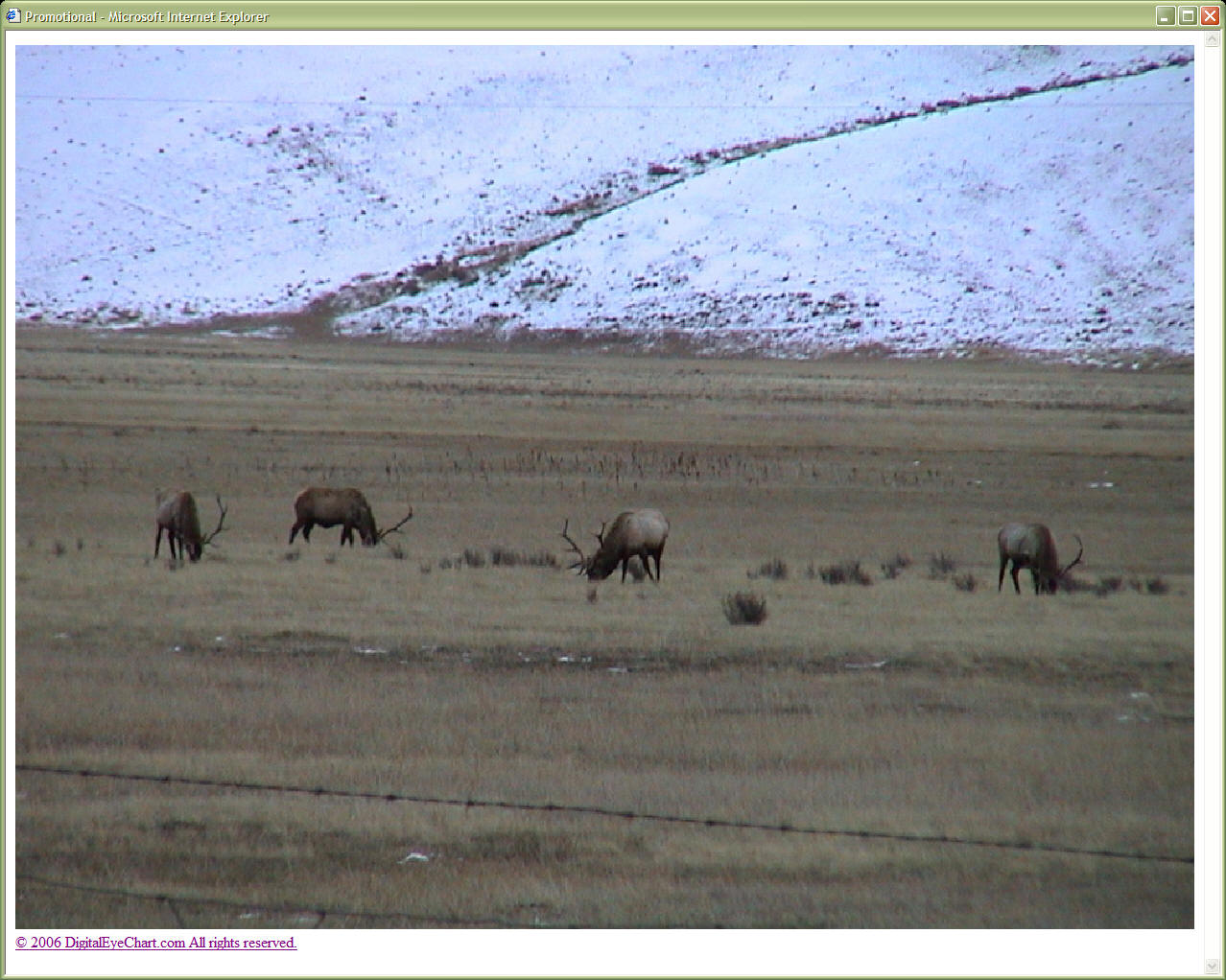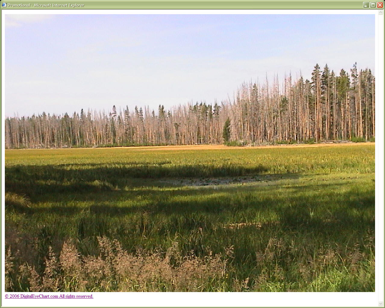 Slide ShowDigital Eye Chart has a slide show feature that steps through pages of educational, promotional, or entertainment displays. A series of scenery photos from Yellowstone and Grand Teton National Parks are included. Slides are HTML based--anything you could put on a webpage can go on a slide. Contact us for your custom slide show needs. |
