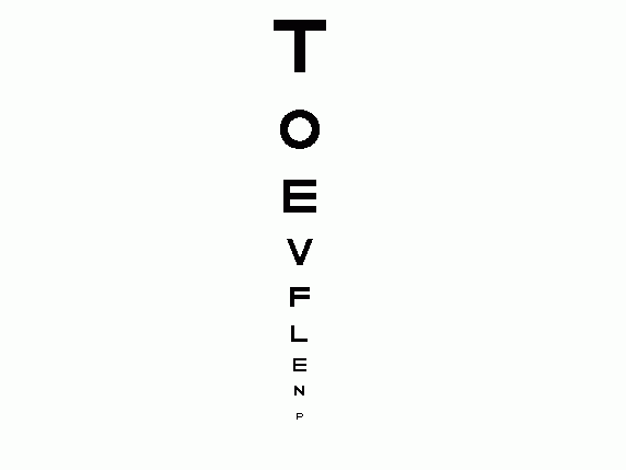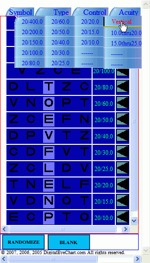 Vertical ViewThis View shows one letter from each row. Select Vertical option for the Acuity control menu. |